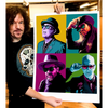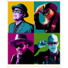 "The Mavericks are a band full of color. A band who create BIG, colorful music. A band with colorful personalities. For my love of POP Art and living in NY, it seemed appropriate to give a band piece of art something vibrant and saturated with solid blocks of color. Heavily under the influence of the NY artists Lichtenstein, Warhol and with the wonderful color sensibilities of Rothko, I used a hand painted stencil technique to create this piece entitled CORE FOUR. I wanted each individual portrait to capture something of each personality, directing the viewer to the focal point of the eyes by giving each member a different colored pair of sunglasses. I hope you enjoy the art!" - Nick Farrow.